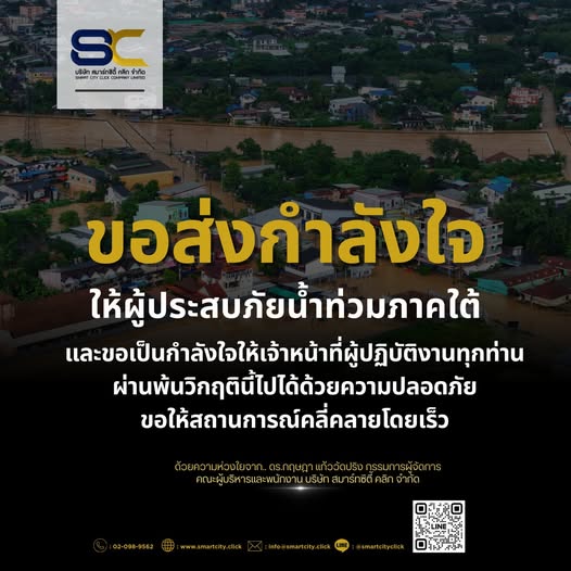 “สมาร์ทซิตี้ คลิก” ขอส่งกำลังใจให้ผู้ประสบภัยน้ำท่วมภาคใต้ ![]()