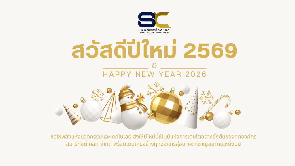 สวัสดีปีใหม่ 2569 l HAPPY NEW YEAR 2026 มกราคม 1, 2026มกราคม 5, 2026 Admin P บทความ ✨สวัสดีปีใหม่ 2569 l HAPPY NEW YEAR 2026✨ขอให้พลังแห่งนวัตกรรมและเทคโนโลยี ส่งให้ปีใหม่นี้เป็นปีแห่งการเติบโตอย่างยั่งยืนของทุกองค์กรนะคะ.สมาร์ทซิตี้ คลิก จำกัด พร้อมเดินเคียงข้างทุกองค์กรสู่อนาคตที่ชาญฉลาดและยั่งยืนค่ะ แชร์ บทความ Admin P