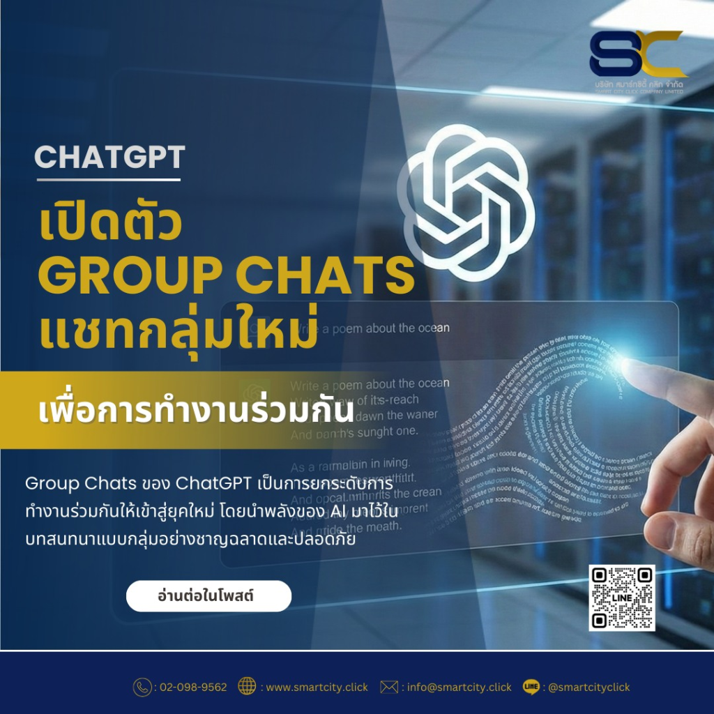 📝 Group Chats ของ ChatGPT เป็นการยกระดับการทำงานร่วมกันให้เข้าสู่ยุคใหม่ โดยนำพลังของ AI มาไว้ในบทสนทนาแบบกลุ่มอย่างชาญฉลาดและปลอดภัย ซึ่งจะช่วยให้คุณและกลุ่มสามารถ จุดประกายไอเดีย, ตัดสินใจ และสร้างสรรค์สิ่งใหม่ๆ ได้อย่างมีประสิทธิภาพมากขึ้น เตรียมตัวสัมผัสประสบการณ์การแชทกลุ่มที่ไม่เหมือนเดิมได้เลย